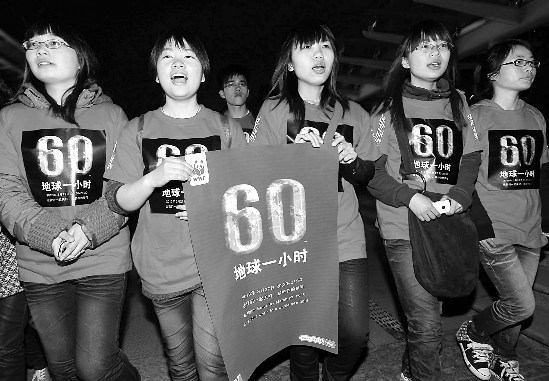 “熄灯一小时,请加入我们,为地球减轻负担!”