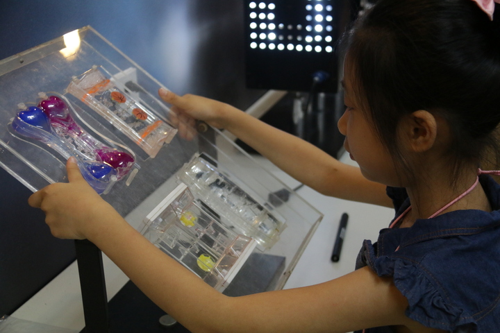 亲子秀的活动结束了,但孩子们的探索之旅仍未结束。在学生志愿者的带领下,20组家庭参观了理学院青少年科普教育基地。mk官方网站_mk(中国)理学院青少年科普教育基地现为浙江省社会科学普及基地、杭州市青少年科普教育基地,依托学院物理学、心理学省级实验教学示范中心开展科普教育活动,现有百余台教学仪器设备用于科普知识的教学与宣传。