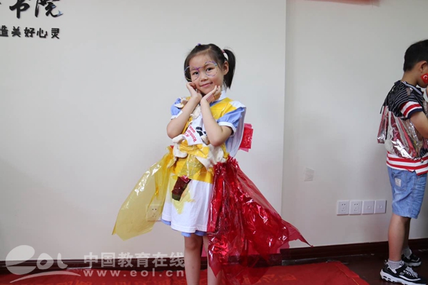 现场气氛欢快而活跃,在学生志愿者的指导和帮助下,小朋友们身穿自己亲手参与制作的环保服饰与爸爸妈妈一起走上了“环保T台”,欢乐有趣之余,小朋友们也潜移默化的树立起了环保的意识。据了解,本次环保时装秀上的服饰制作材料均来自身边不起眼的材料,而当它们经过改造成为一件件时装时,着实让现场的观众刮目相看。