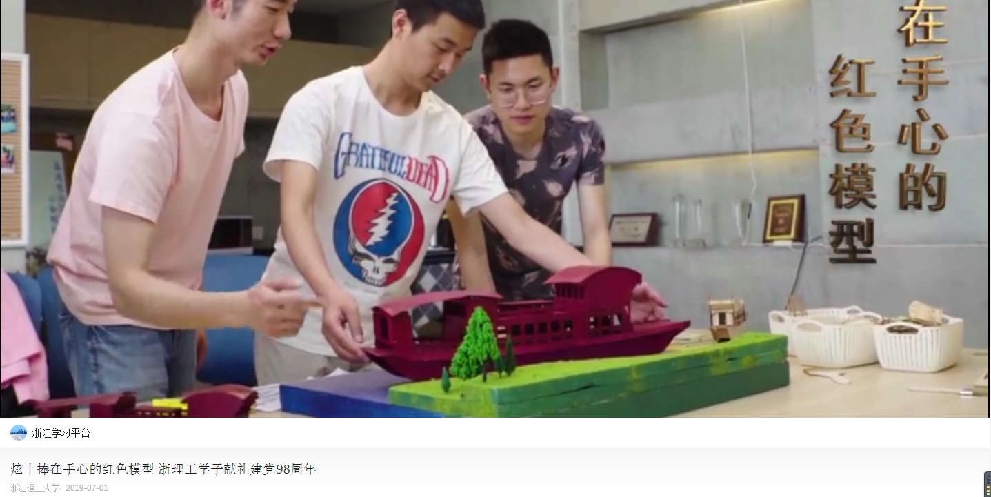 7月1日,【学习强国】报道了我校建工学生搭建精美红色模型庆祝建党98周年。