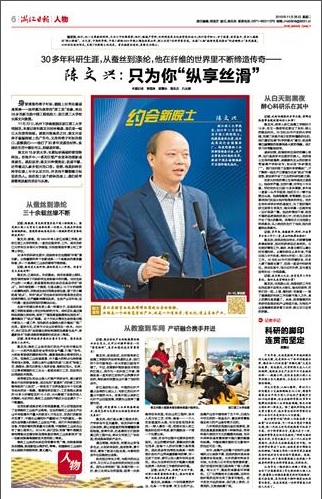 《浙江日报》专版:30多年科研生涯,从蚕丝到涤纶,他在纤维的世界里不断缔造传奇——