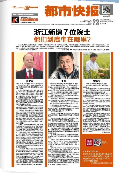 《都市快报》头版:浙江新增7位院士 他们到底牛在哪里?