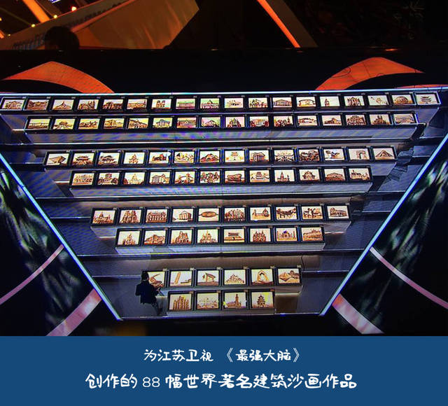 2016年4月江苏卫视《最强大脑》节目中88幅沙画均出自她之手,成为当期节目的最大亮点。她为马云创作了世界上第一幅彩色沙画肖像,马云本人赞不绝口。