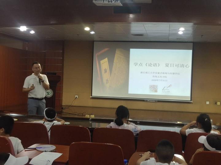 来自该校史量才新闻与传播学院的党委副书记方平,结合该院传统文化书院的内容,为小候鸟们带去一堂别开生面的《点读论语 夏日可清心》的讲座,他用趣味故事、幽默话题和临场互动,带领小候鸟们品读论语中的金句,在笑声朗朗中吸收国学知识,并提高文学修养。