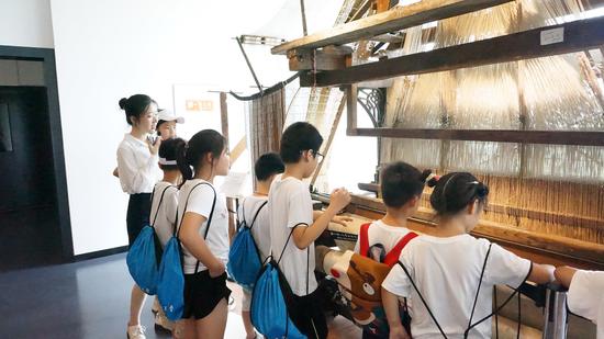 活动中,小候鸟们走进位于该校的全国高校首个丝绸文化主题博物馆,通过志愿讲解员的介绍,并从珍贵的影像、独特的旧机器和现代化的作品中,耳濡目染我国丝绸文化的博大精深,体会“一带一路”倡议的智慧光芒,纷纷在实景、实物前留影,还现场尝试了手工梭子技艺。