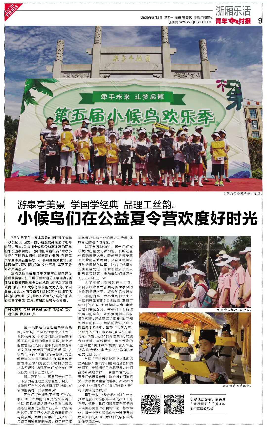 8月4日,浙江新闻、中国新闻网、青年时报、浙青网等媒体报道我校为外来务工人员的子女走开展传统文化研学活动。