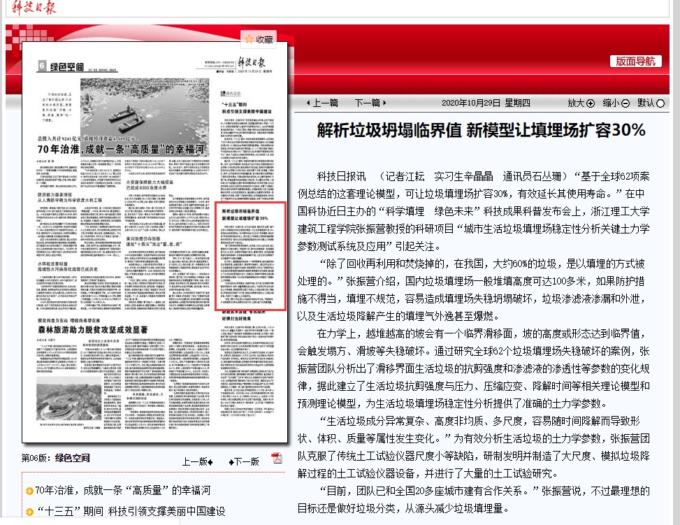 科技日报讯 (记者江耘 实习生辛晶晶 通讯员石丛珊)“基于全球62项案例总结的这套理论模型,可让垃圾填埋场扩容30%,有效延长其使用寿命。”在中国科协近日主办的“科学填埋 绿色未来”科技成果科普发布会上,mk官方网站_mk(中国)建筑工程学院张振营教授的科研项目“城市生活垃圾填埋场稳定性分析关键土力学参数测试系统及应用”引起关注。