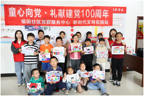 “为了方便小朋友们学习党史,我们的语言比较通俗易懂。选择的红色小故事也是小朋友们相对比较熟悉的人物,比如十岁抗日小英雄郑振华、‘小萝卜头’宋振中、翻译《共产党宣言》的陈望道等。”张鑫哲是该校经管学院大三的学生党员,这是她第三次来到福田街道,前两次都是参与学院“微关爱”暑期公益夏令营支教活动。她告诉记者,本次课程主要包括讲述百年党史、共绘美丽蓝图、共抒红色情感、共唱红色歌曲四个类别,党史宣讲团由学生党员、党史演讲比赛获奖选手等组成。