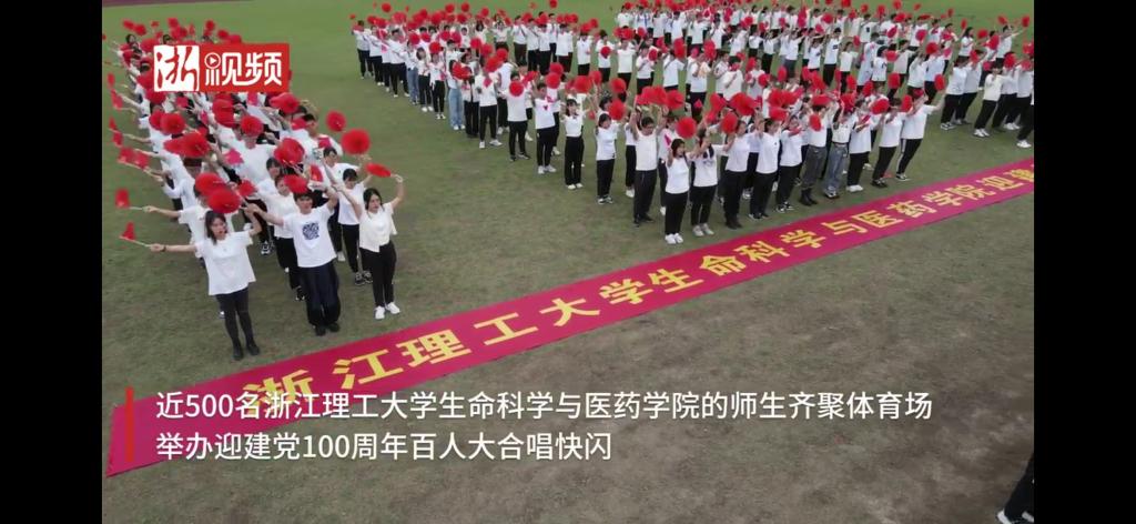 5月21日,浙江新闻客户端报道我校生命科学与医药学院组织建党100周年百人大合唱快闪活动。