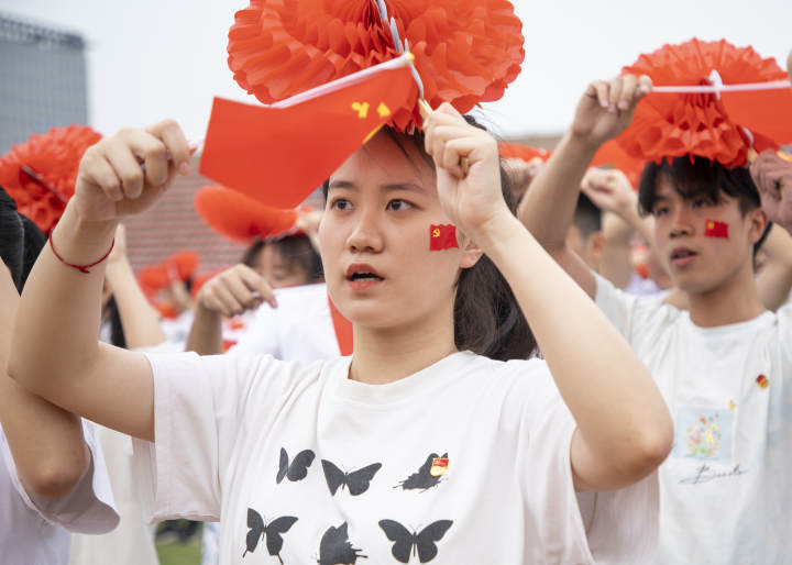 5月21日,近500名mk官方网站_mk(中国)生命科学与医药学院的党员师生和团员青年齐聚万人体育场,举办迎建党100周年百人大合唱快闪。在场师生高唱《没有共产党就没有新中国》和《唱支山歌给党听》,抒发对党的热爱和迎接建党百年华诞的喜悦之情。在近10米宽的巨幅党旗后面,大家手持党旗和红花,摆出“100”造型。