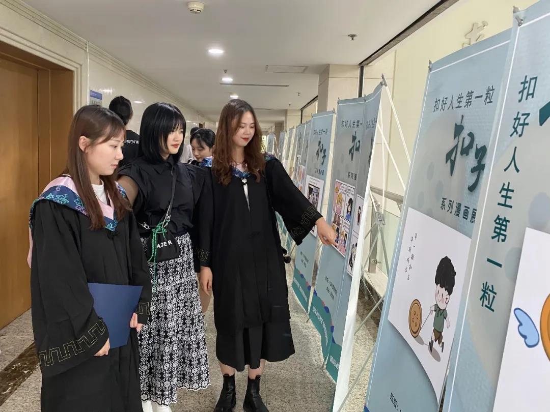陈东是今年的毕业生之一,她与室友相约,一起来参观了此次漫画展。她说:“看到学弟学妹们创作的漫画,我们觉得每一幅都是创意满满、才华横溢。想到这是母校对我们毕业生的殷殷嘱托,大家心里感到十分温暖。相信我们每一位毕业生都会扣好人生第一粒扣子,走好迈向社会第一步。”