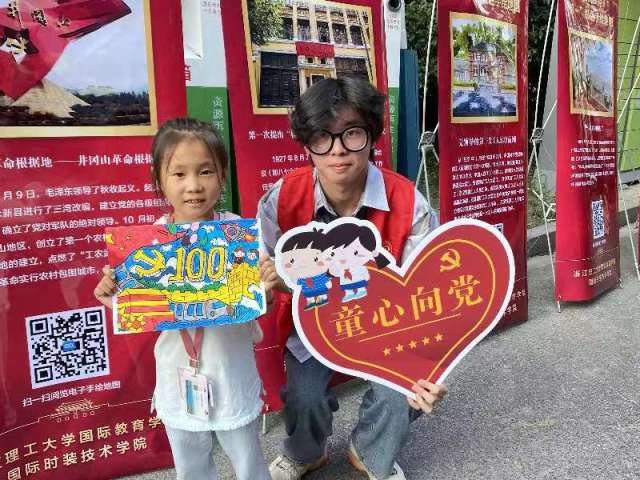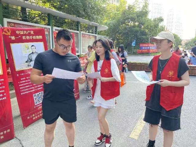红色手绘、红色故事成了大小朋友们的沟通桥梁,也化身为红色基因传承的纽带。大学生们还为社区居民发放中国共产党“第一”手绘红色地图,在一幅幅鲜明生动的手绘图片展前,介绍党的历史上多个“第一”事件和英雄人物故事。