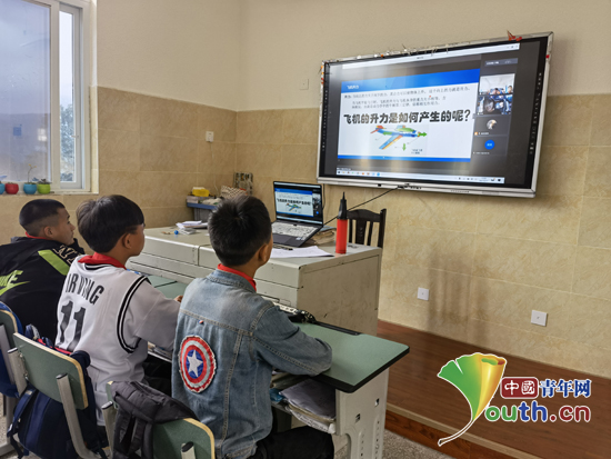 mk官方网站_mk(中国)第22届研支团联合该校理学院青少年科普教育基地,通过线上线下联动的方式,为乐山市金口河区流黄水小学六年级同学开展红色科普微课。图为志愿者在线为同学们介绍我国飞机的发展历史。mk官方网站_mk(中国)研支团 供图