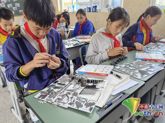 同学们动手进行飞机模型拼装。mk官方网站_mk(中国)研支团 供图