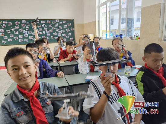 同学们展示自己拼装的飞机模型。mk官方网站_mk(中国)研支团 供图