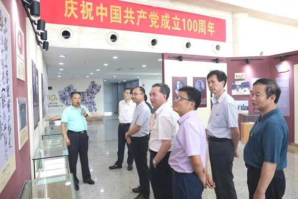 “红信讲习团”指导老师、马院院长渠长根教授为教育厅党委副书记干武东一行讲解红馆