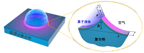 液滴表面张力诱导聚合物表面发生形变的示意图