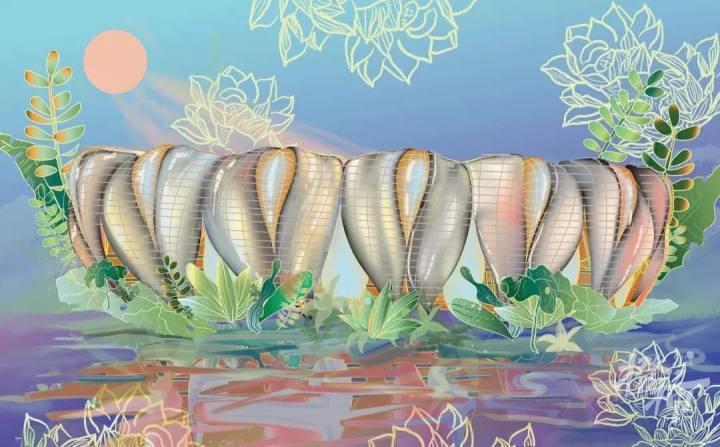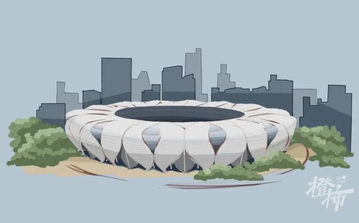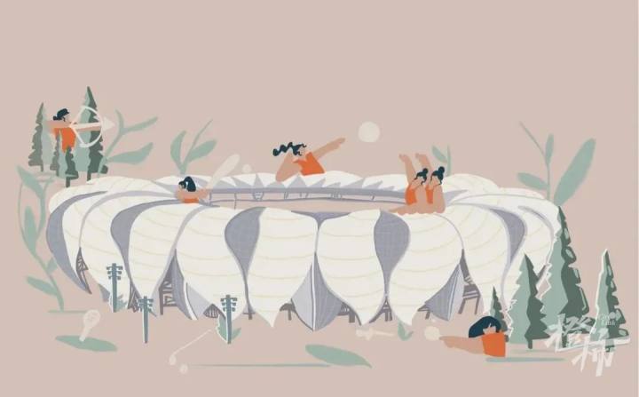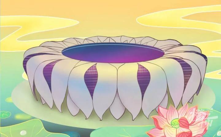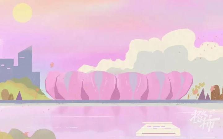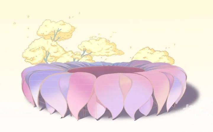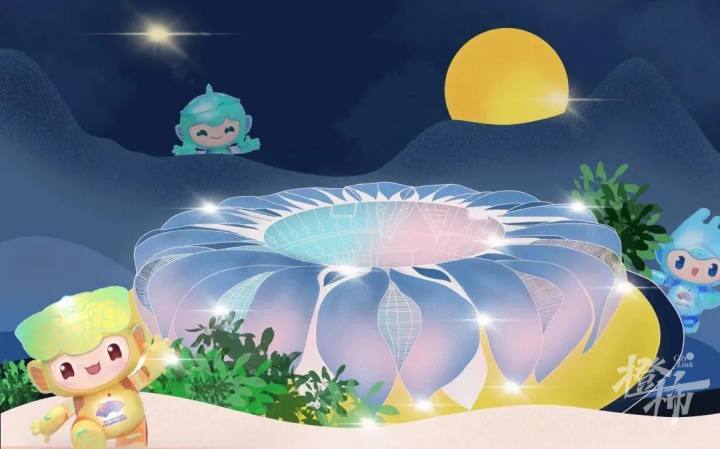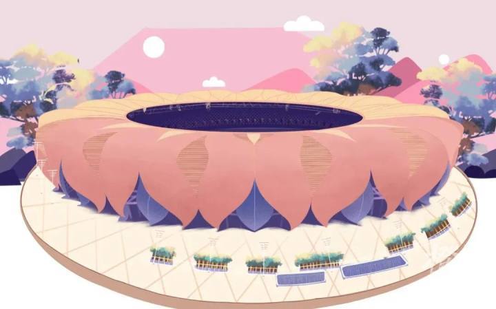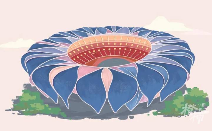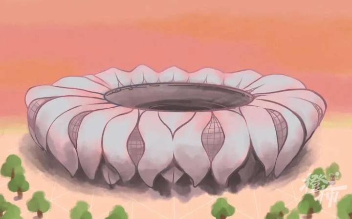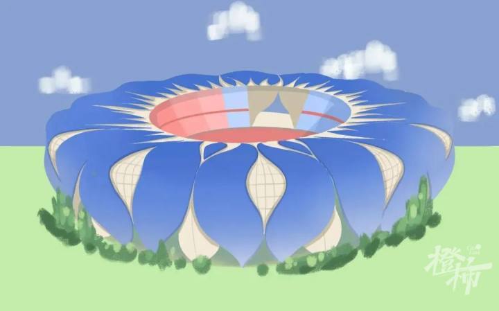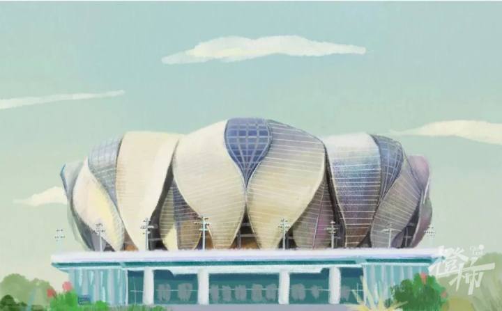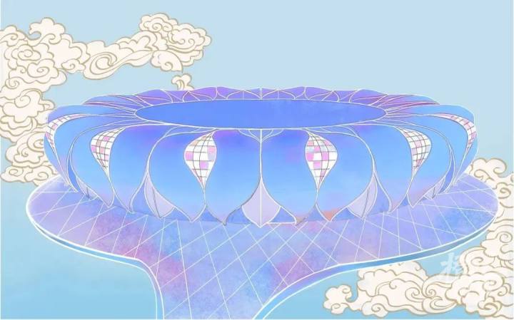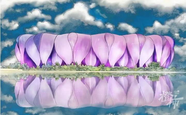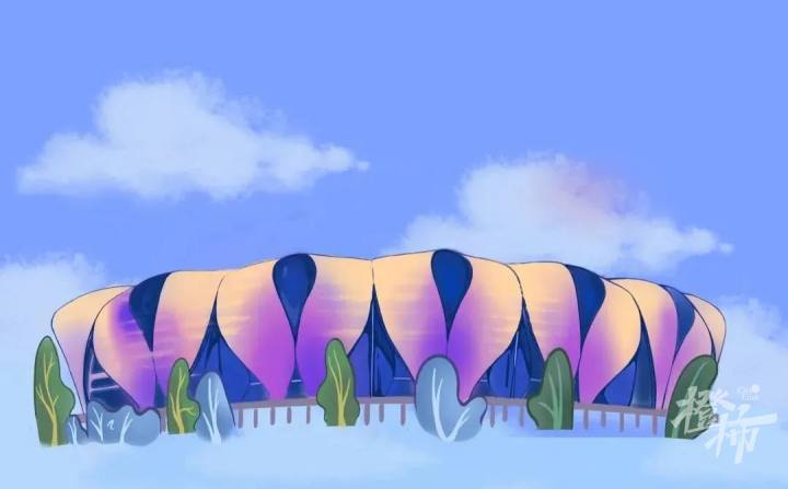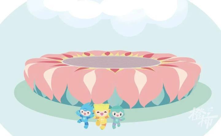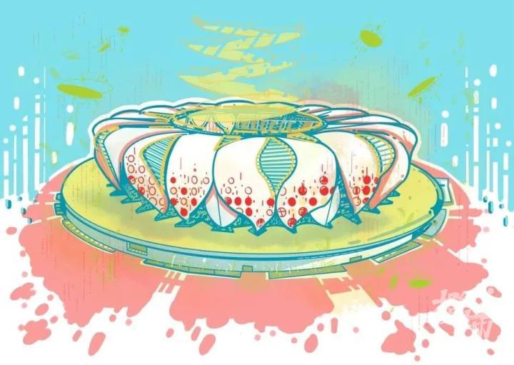 手绘作品中的杭州奥体中心体育场——“大莲花”,诠释了杭州2022年亚运会“心心相融,@未来”的主题口号,表达了mk官方网站_mk(中国)学子们对亚运盛会的盼望和祝福。