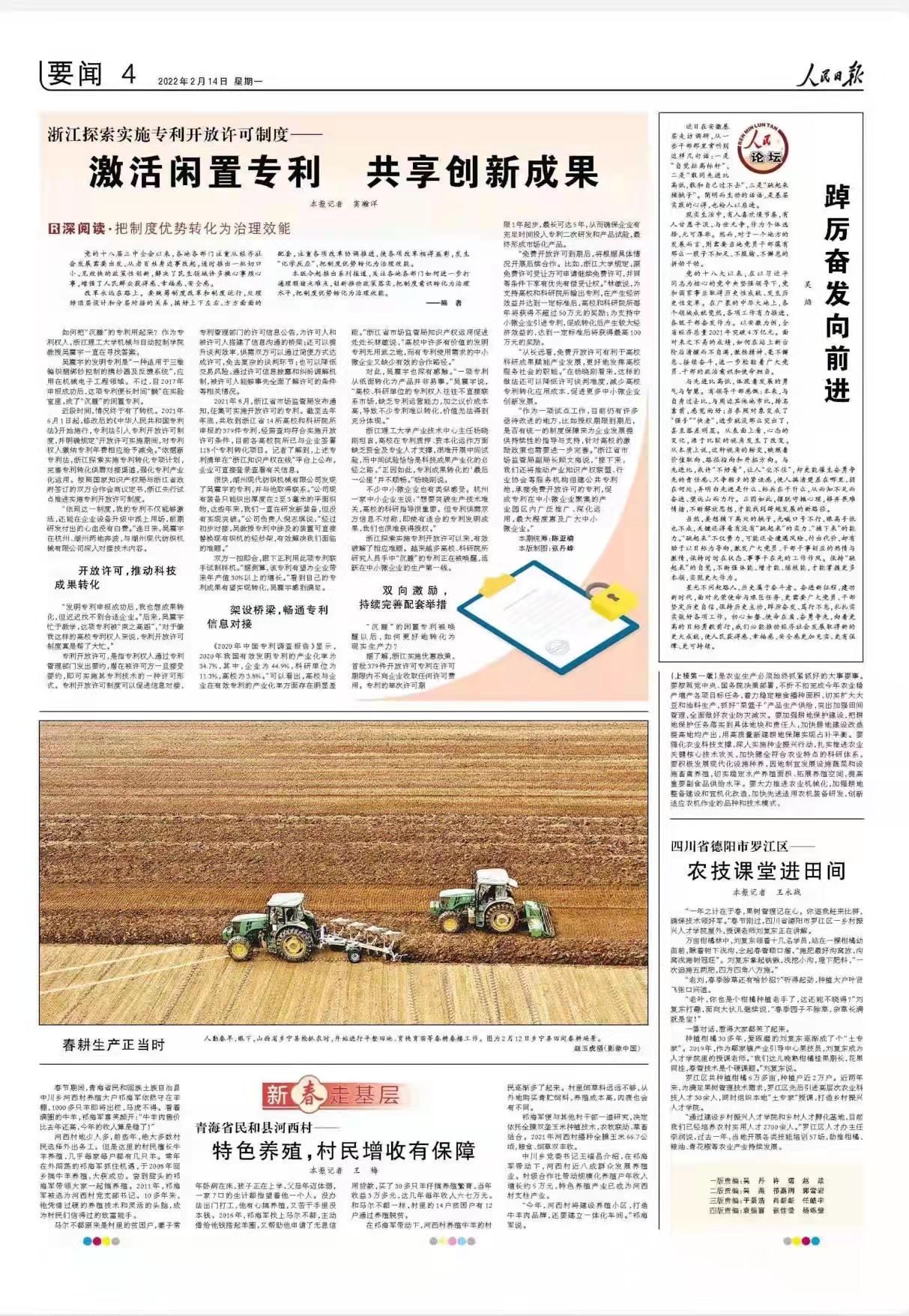2月14日,《人民日报》要闻版头条、浙江新闻客户端、浙江新闻联播报道我校激活闲置专利、共享创新成果。