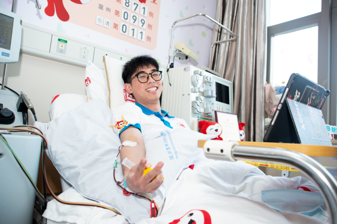 “在家人的支持和陪伴下,我只要坐这里几个小时,另一个人就有生的希望,这是一件多么有意义的事啊!”仇逸楠笑着说道。准备妥当后,仇逸楠入院并开始注射动员剂,在为期5天的动员剂注射后,经过4个小时的采集提取,341ml造血干细胞悬浮液从他的体内缓缓流出,为远方的患者送去了生命之光。