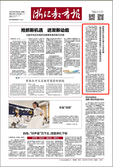5月9日,《浙江教育报》头版报道省教育厅来我校开展主题党日活动。