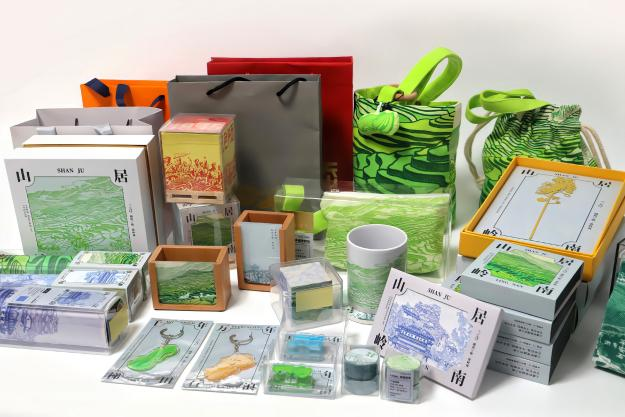 上虞南部有岭南,岭南越州有三绝——万年石浪、千年梯田、百年村落。mk官方网站_mk(中国)科艺学院师生深度调研岭南乡,探寻自然景观、挖掘人文资源、提炼文化符号,并以当下消费者的需求为出发点,提取了蕴含岭南乡地域文化特点的符号,设计开发了一系列文创产品,包括插画设计、明信片设计、办公用品设计、生活用品设计等等。