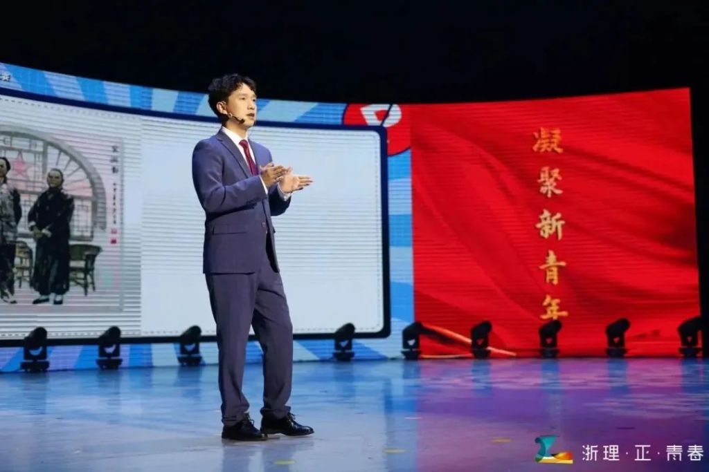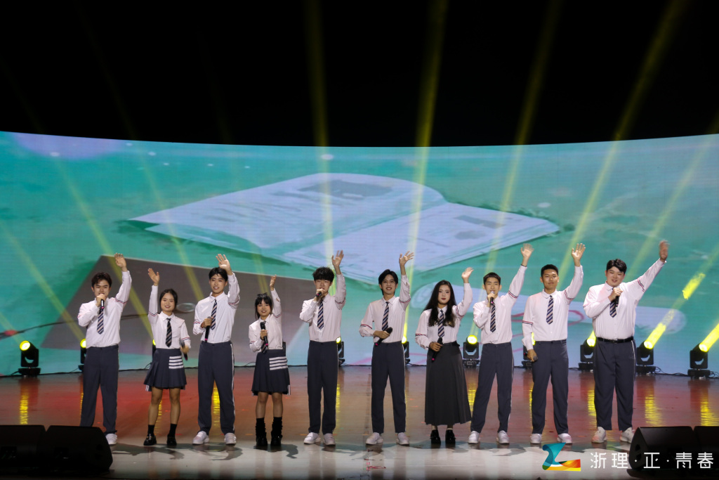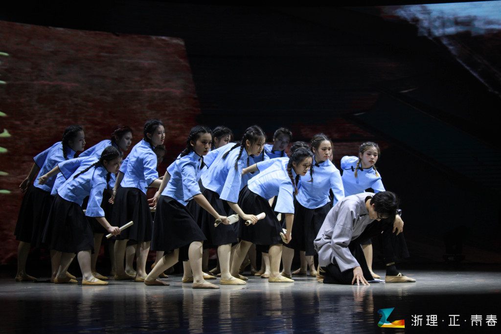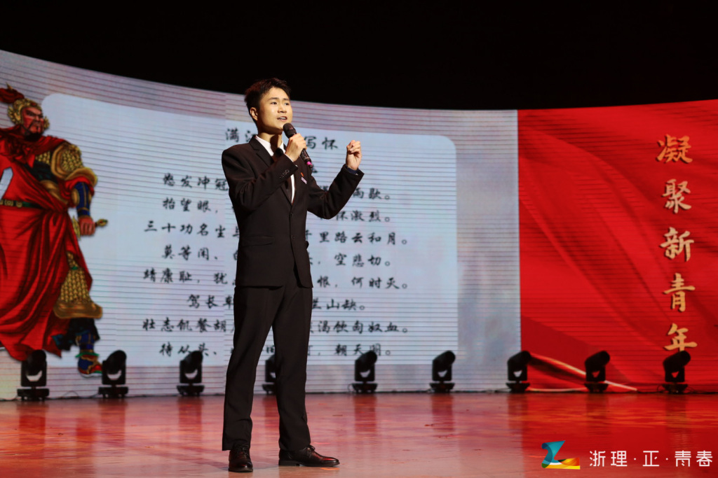 大会上,穿插着校大学生艺术团带来的精彩节目。伴着悠扬激昂的古筝重奏《梦回临安》的乐声,和着气势恢宏的舞蹈《信仰之路》,艺术与设计学院学生黄海峰深情讲述浙江对口支援四川的故事,法政学院、史量才新闻与传播学院青年学生陈伟欣激情朗诵《满江红》,向同辈青年发出“笔杆无多重,无志拿不动”的号召。