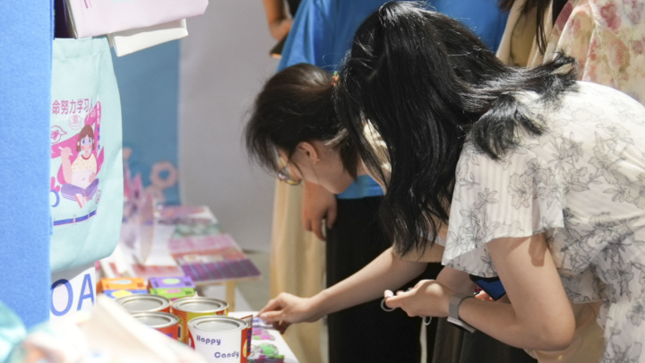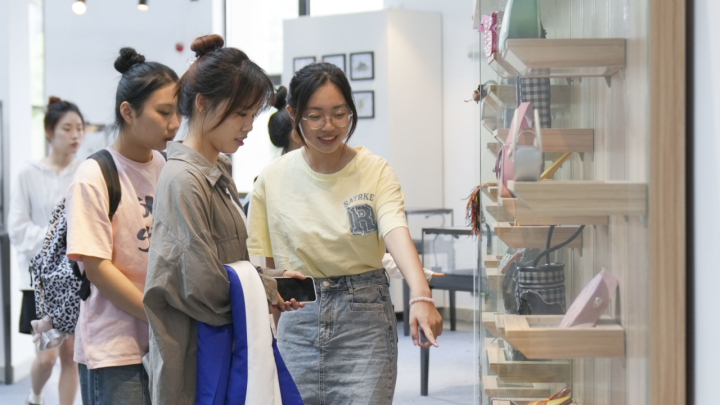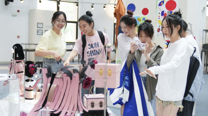 造型别致的童装,清新淡雅的青瓷包,还有巧妙融入梁祝文化的创意伞......漫步展会现场,鲜活的“上虞元素”扑面而来。在“虞理共进”党建引领校地融合发展试点工作的推动下,大学生的青春与上虞的乡村“双向奔赴”,饱含上虞特色的毕业作品比比皆是,令人不禁驻足欣赏。