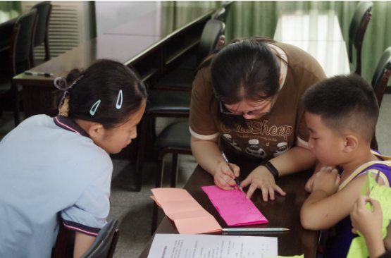 临山镇临海村,今年则是第九年推出“假日学校”。680平方米的会议室成了孩子们的乐园,四台立式空调吹着习习凉风,会议室门口还张贴着课程安排表和作息时间表。今年临海村邀请了退休教师、本村应届大学生为假日学校的辅导老师,除了常规的作业辅导,还为孩子们推出了电子琴、口琴、笛子、篮球等艺术、体育课程,培养他们良好学习习惯的同时,激发他们的兴趣爱好。值得一提的是,本年度的假日学校还结合“亚运”元素,开展“助力亚运,绘创未来”“巧手剪纸迎亚运”“童心逐梦迎亚运”等绘画、剪纸、趣味体育游戏等活动,以美助力亚运,弘扬运动精神,为亚运会呐喊加油。