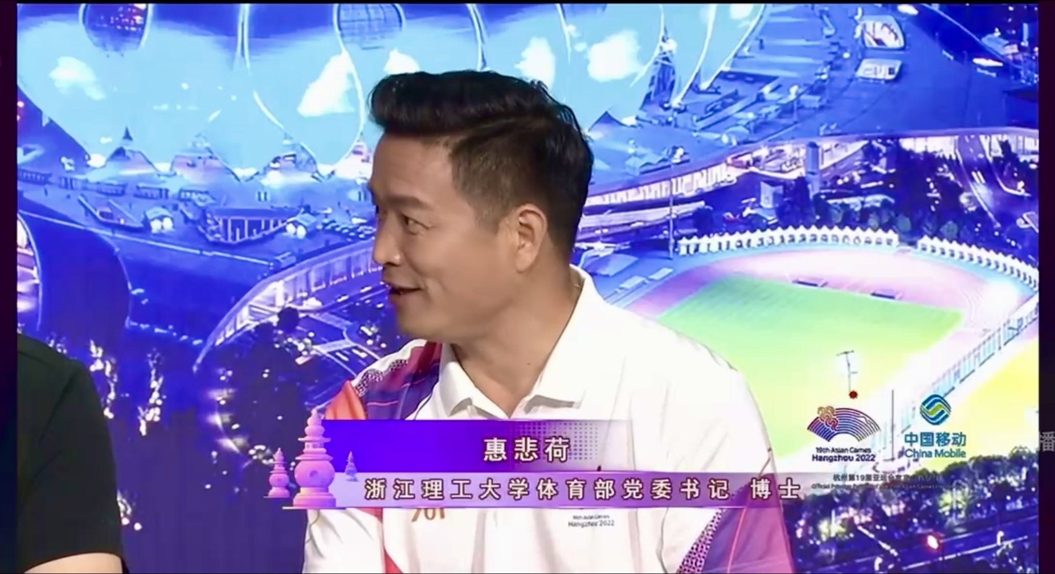 10月8日,体育教研部党委书记惠悲荷受邀参加杭州电视台综合频道杭州——爱达未来杭州第19届亚运会大型晚间直播节目。