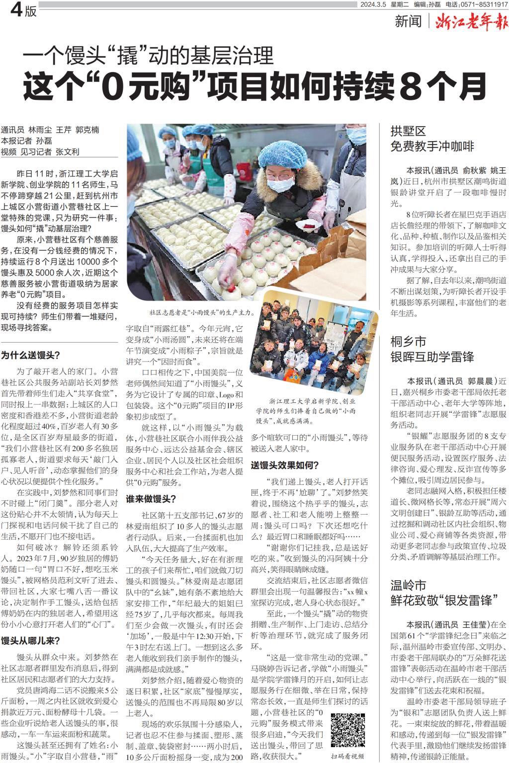 《浙江老年报》一个馒头“撬”动的基层治理这个“0元购”项目如何持续8个月