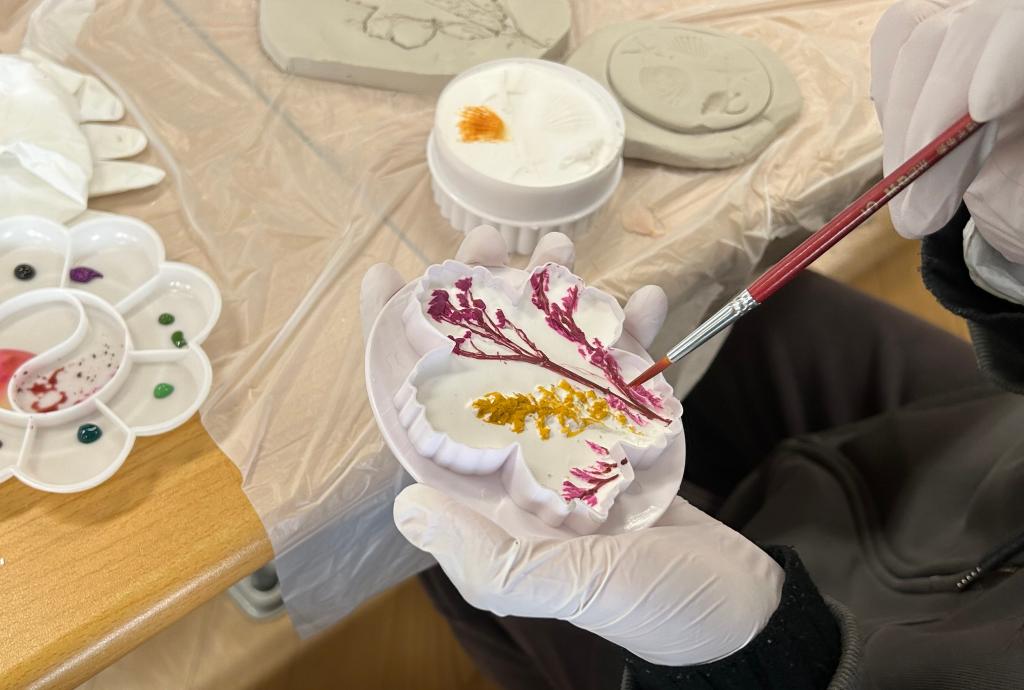 “从在校园里寻找适合的植物,了解植物的名称和生长习性,亲手构图、擀泥、压花、浇注、成型,每个步骤都让我这个理科生大开眼界,看着我亲手制作的劳动成果,成就感拉满!”来自材料科学与工程学院的杨数宇兴奋地说道。