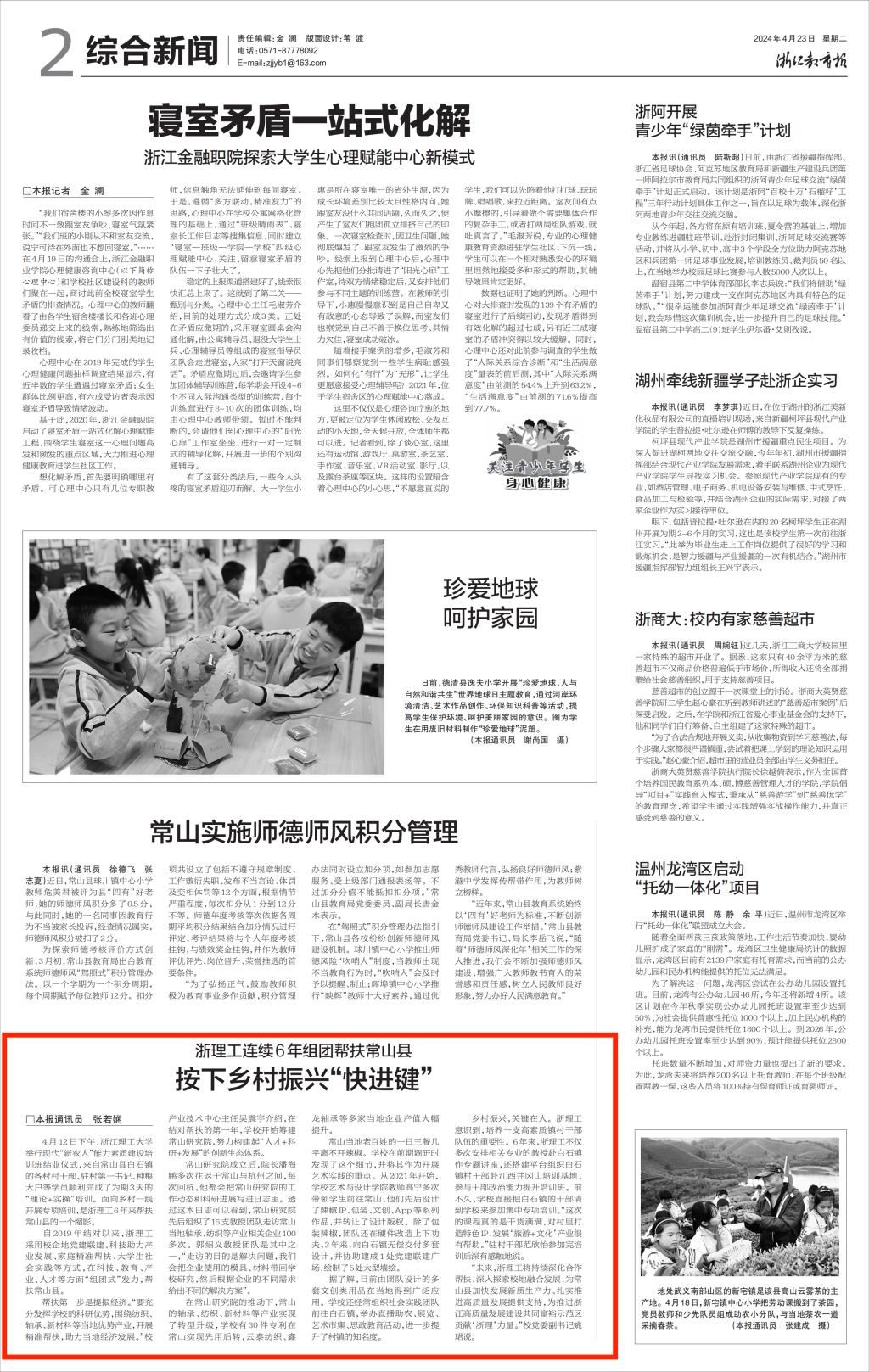 《浙江教育报》浙理工连续6年组团帮扶常山县按下乡村振兴“快进键”