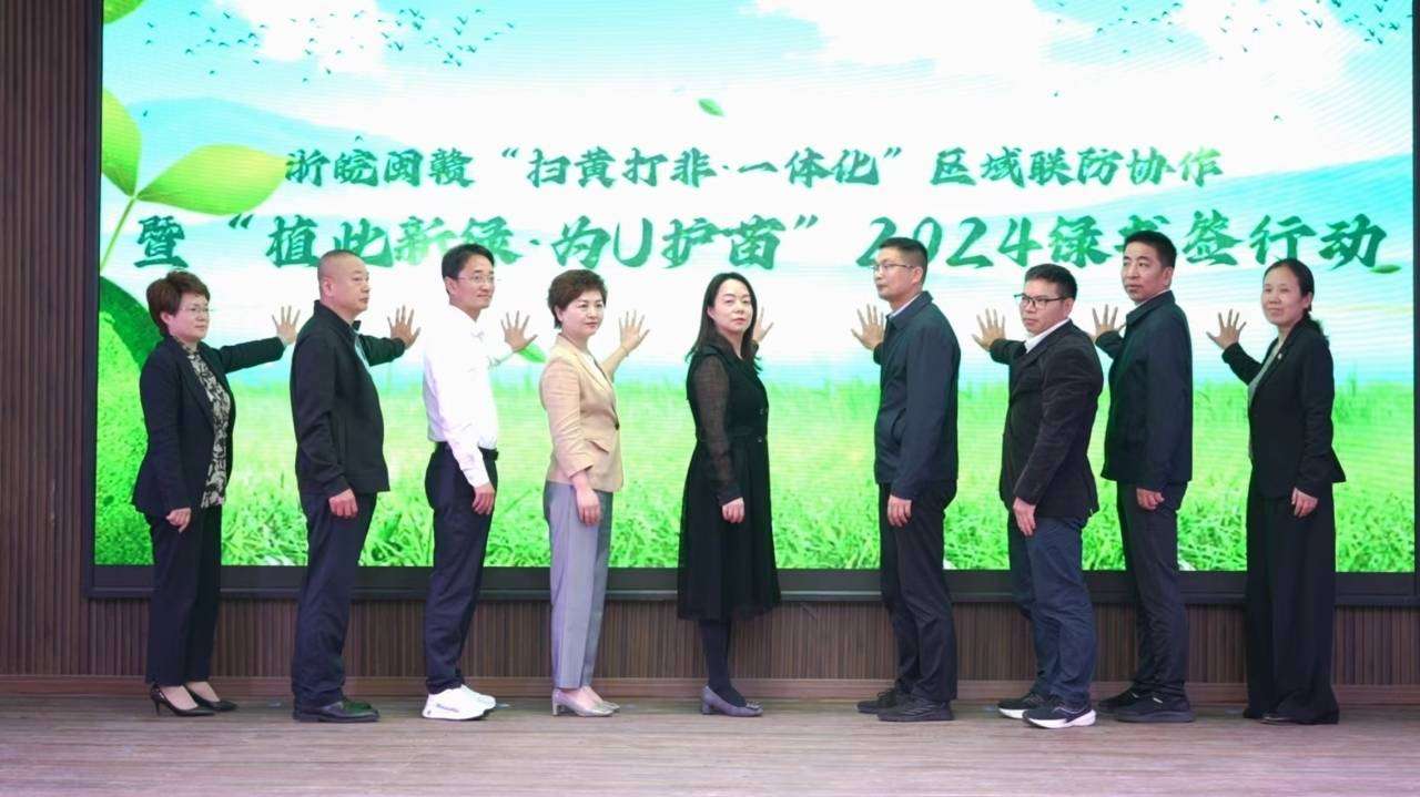 当天,来自四省六地市的“扫黄打非”办公室工作人员还一同上台启动“植此新绿·为U护苗”2024绿书签行动,该行动旨在营造健康有序的文化市场环境。接下来,各地将合作推进法治进校园、知识产权进校园等相关活动,共享成功经验做法,共同推进文化市场的净化和治理工作。(通讯员 汪晨云 葛锦熙 光明日报全媒体记者 陆健)