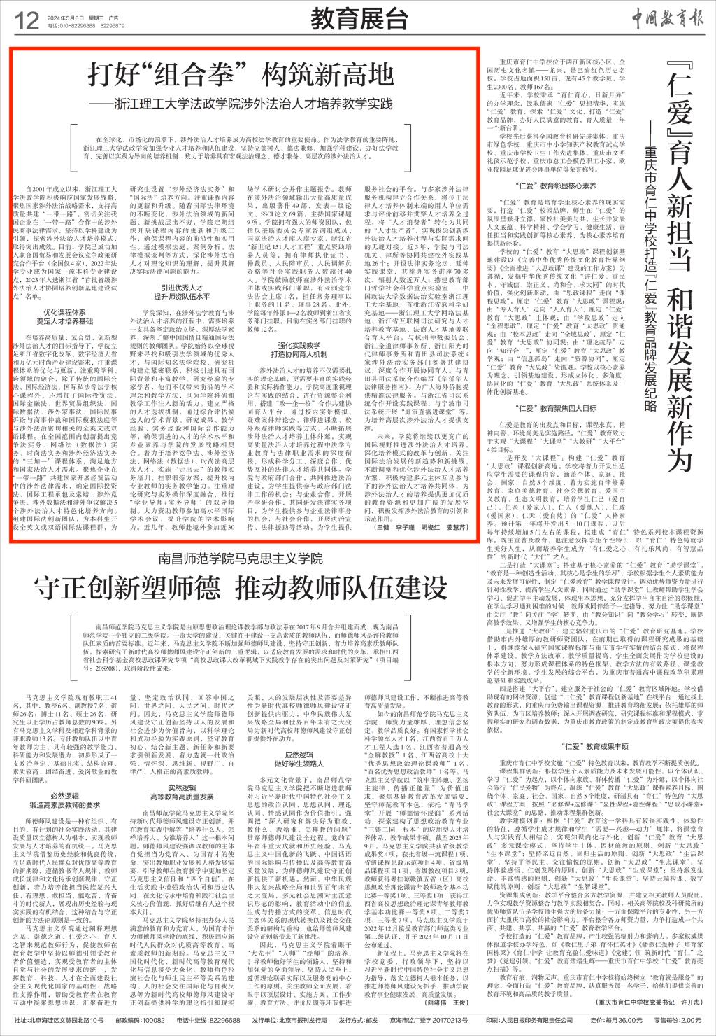 5月8日,《中国教育报》(第12版)报道法政学院涉外法治人才培养教学实践。