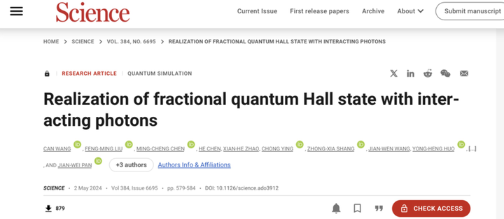 量子科技领域又有新成果。近日,中国科学技术大学宣布,潘建伟院士团队利用“自底而上”的量子模拟方法,在国际上首次实现了光子的分数量子反常霍尔态。