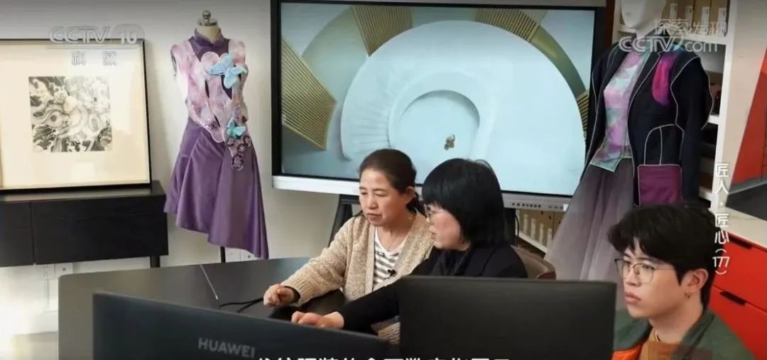 在中央电视台科教频道CCTV-10的《探索·发现》栏目中,从事时尚数字化推广研究的蔡建梅教师团队和沈海娜教师团队备受瞩目。节目中,数字服装师沈海娜,将真实服装进行数字化转化,完整呈现了数字动态服装;蔡建梅团队做了整个系列全部产品的数字化展示方案,并将选中的中国丝绸博物馆数字藏品龙纹服装进行全面数字化展示。她们通过运用先进的数字化技术,将传统服装设计与现代科技完美融合,打破了传统设计的局限,为服装行业注入了新的活力。