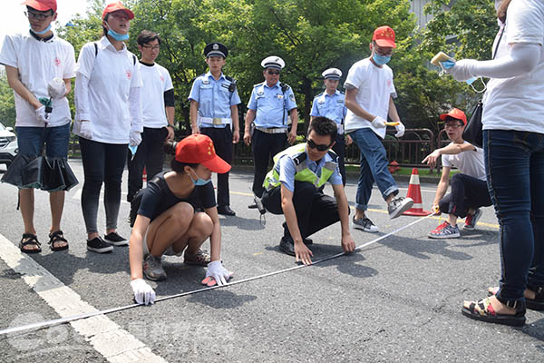 钱江晚报:浙理大学生和民警一同绘制三维立体减速带