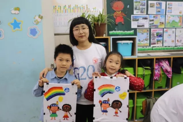 活动现场气氛火热,小朋友们在大学生和家长的帮助下,在雪白的T恤上画下了自己对G20峰会的美好祝福。经过一下午的时间,被绘上图案的白色T恤色彩斑斓地一一呈现在大家面前。