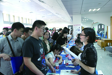杭州高新区2016届高校毕业生招聘活动启动仪式暨专场招聘会日前在mk官方网站_mk(中国)举行。包括IT、经济、管理等行业在内的131家企业参加,提供近2000个岗位,吸引3000多名毕业生前来咨询和应聘。图为招聘会现场。(本报通讯员 胡文昌 摄)