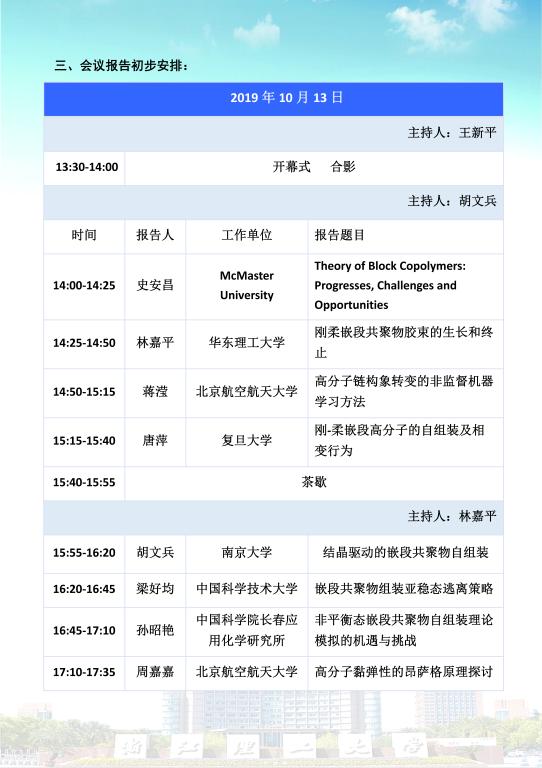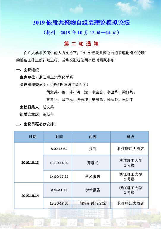 2019嵌段共聚物自组装理论模拟论坛 第二轮通知