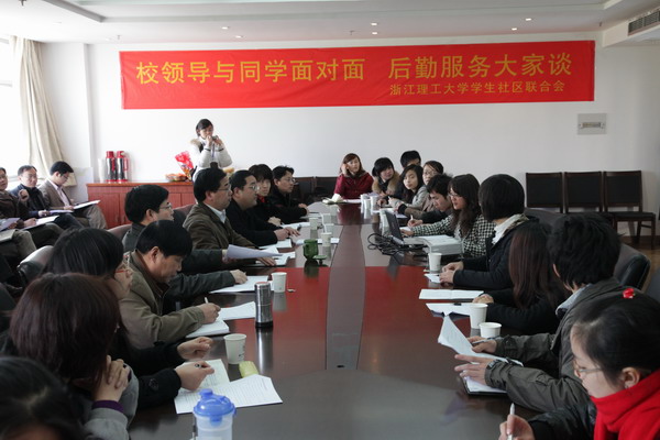 近日,副校长沈满洪在行政楼217会议室主持召开了学生后勤服务工作座谈会。学工部、研工部、留学生处、总务处、保卫处、后勤集团负责人以及各学院、各楼层的学生代表参加了座谈。