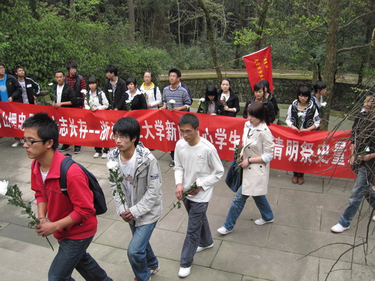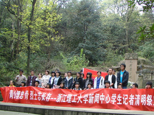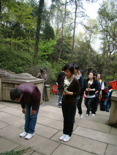 又是一年清明时,苍松翠柏掩映下的我校著名校友史量才先生的墓地静谧而肃穆,校史量才学生记者中心、阳光网站和广播台的学生记者在那里郑重地向先生献花、默哀,沉痛悼念这位中国报业泰斗。