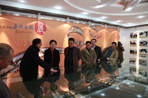 考察团一行还到嘉兴学院进行了参观访问。嘉兴学院院长徐宪民、党委副书记吕延勤、纪委书记史永安热情接待了考察团成员。吕延勤介绍了嘉兴学院的历史和近年来的发展情况。金瑾如对嘉兴学院的热情接待表示感谢,对嘉兴学院的快速发展表示赞许,希望今后两校多加往来,广泛开展交流与合作。