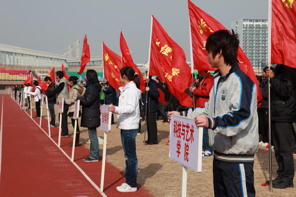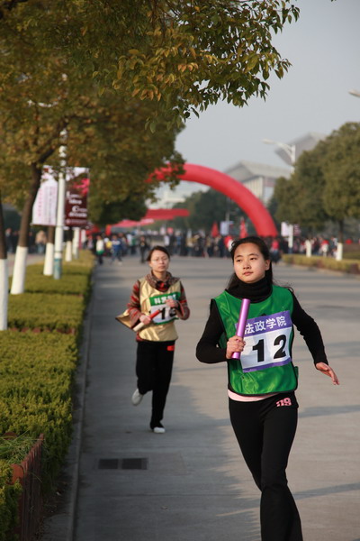 随着程刚鸣枪发令,本次由2000多名师生员工组成的“冬季健身长跑”队伍开始起跑,绕着校园跑完全程。随后,迎新越野接力赛开始,每个学院有20名运动员参赛,在紧张而激烈的气氛下,经过近2小时的激烈角逐,科艺学院、建工学院、材纺学院、艺设学院、信电学院、经管学院、启新学院、外语学院分获前八名。