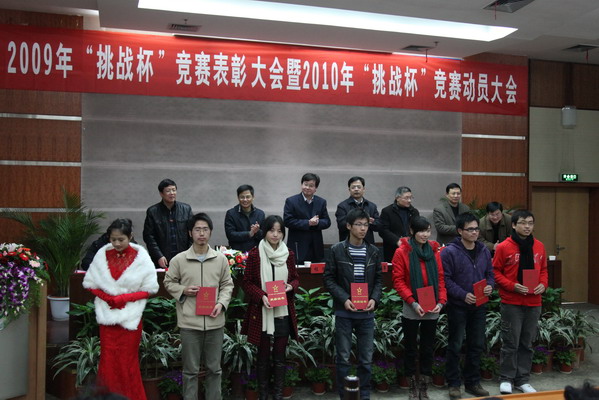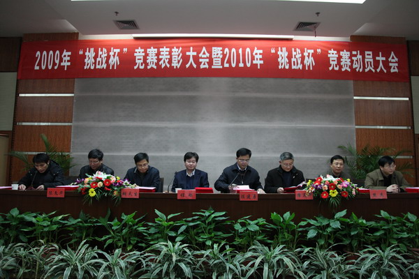 1月4日下午,2009年“挑战杯”竞赛表彰大会暨2010年“挑战杯”竞赛动员大会在行政楼二楼报告厅举行,校党委副书记程刚,副校长陈建勇,党委学工部、党委研工部、科技处、教务处、校团委等相关职能部门负责人出席了大会。
