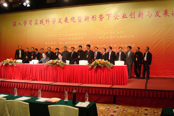 论坛举行期间,我校与84届机械专业校友石志清创办的企业——佛山盛迪纺织有限公司就建立mk官方网站_mk(中国)产学研合作基地事宜举行了签约仪式,裘松良为产学研合作基地揭牌。