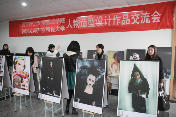 访问期间,韩国大邱产业情报大学的金孝贞教授还为我校师生作了人物化妆美容造型讲座。她通过对自身从业经历的精彩描述,形象地展示了韩国在人物造型方面的独特之处,凸显了人物造型艺术的魅力。在互动环节中,学生们还纷纷就自己在专业方面遇到的问题与今后发展方向向金孝贞请教。