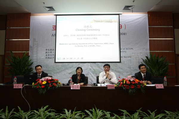 此次会议主要有“新经济对竞争法的挑战”、“经营者集中的控制标准”、“滥用市场支配地位”、“亚洲国家地区的竞争推进”等四项议题。会上举行了两场专题研讨会,第一场主题为市场支配地位滥用,由我校王健教授主持;第二场主题为亚洲竞争推进,由湖南大学郑鹏程教授主持。闭幕式由罗泽衡和徐士英主持。各位竞争法专家学者围绕会议议题进行了深入的交流,并取得了共识。