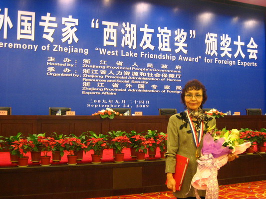 9月24日,2009年度浙江省外国专家“西湖友谊奖”颁奖典礼在杭州饭店隆重举行。我校日本籍文教专家饭冢善子女士喜获殊荣,成为我校第7位获此荣誉的外国文教专家。